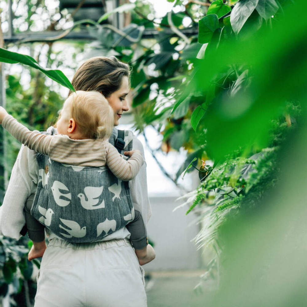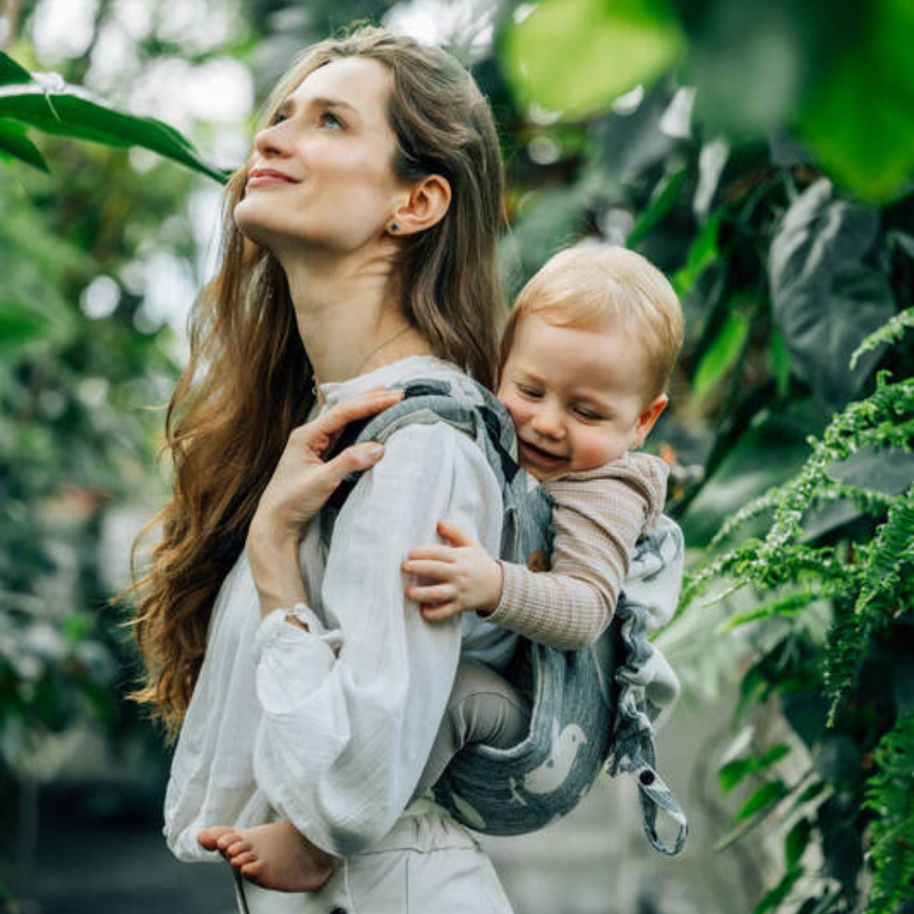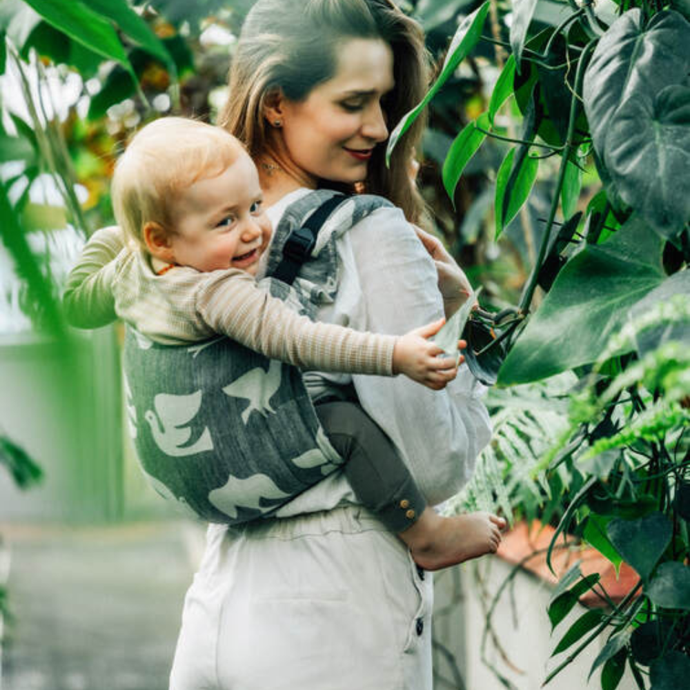 Lenny Lambバックル留め Onbuhimo(おんぶひも)です。おんぶするのも怖くなく、調整も簡単です。この生地はジャカード織で、なかでも軽めの織り。
