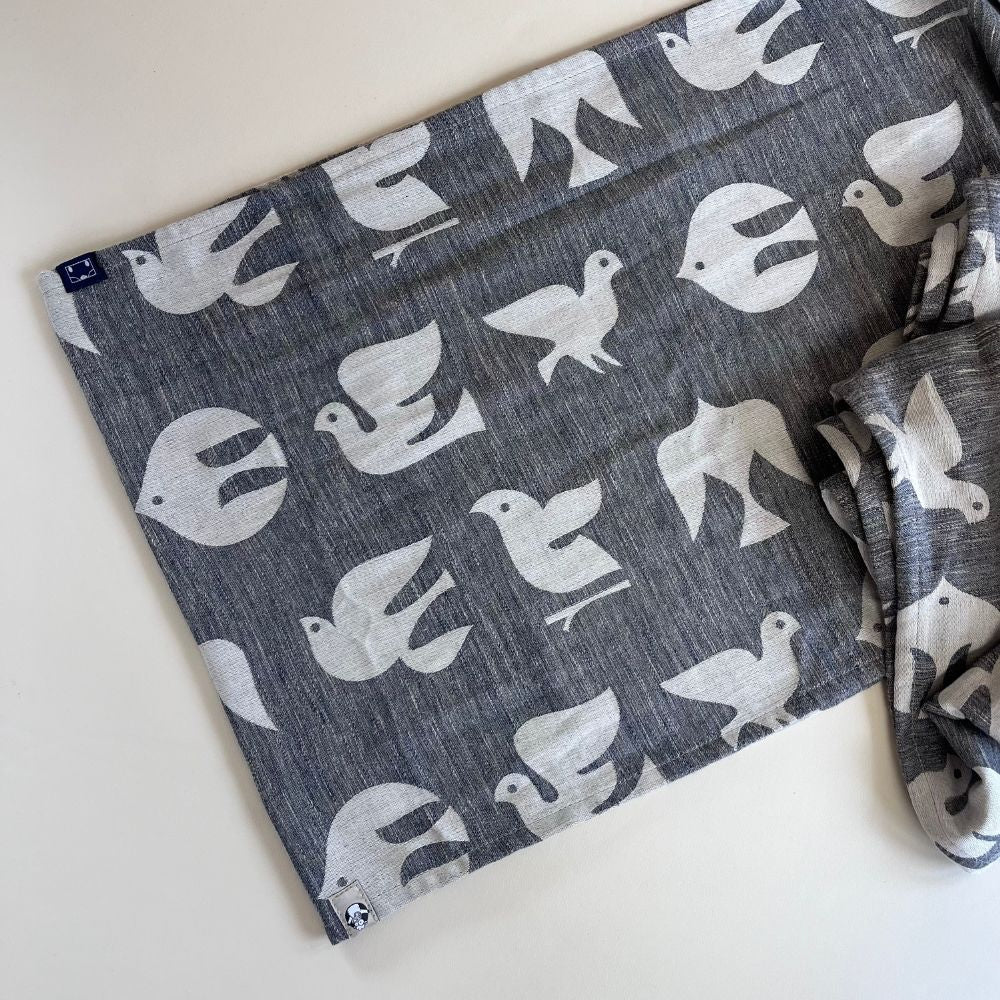 鳥の柄でグレー×白のデザインは素朴なイメージが好きな方にぴったり。いろいろな種類の鳥がいますよ。グレー系なので、コーディネートもしやすいです。