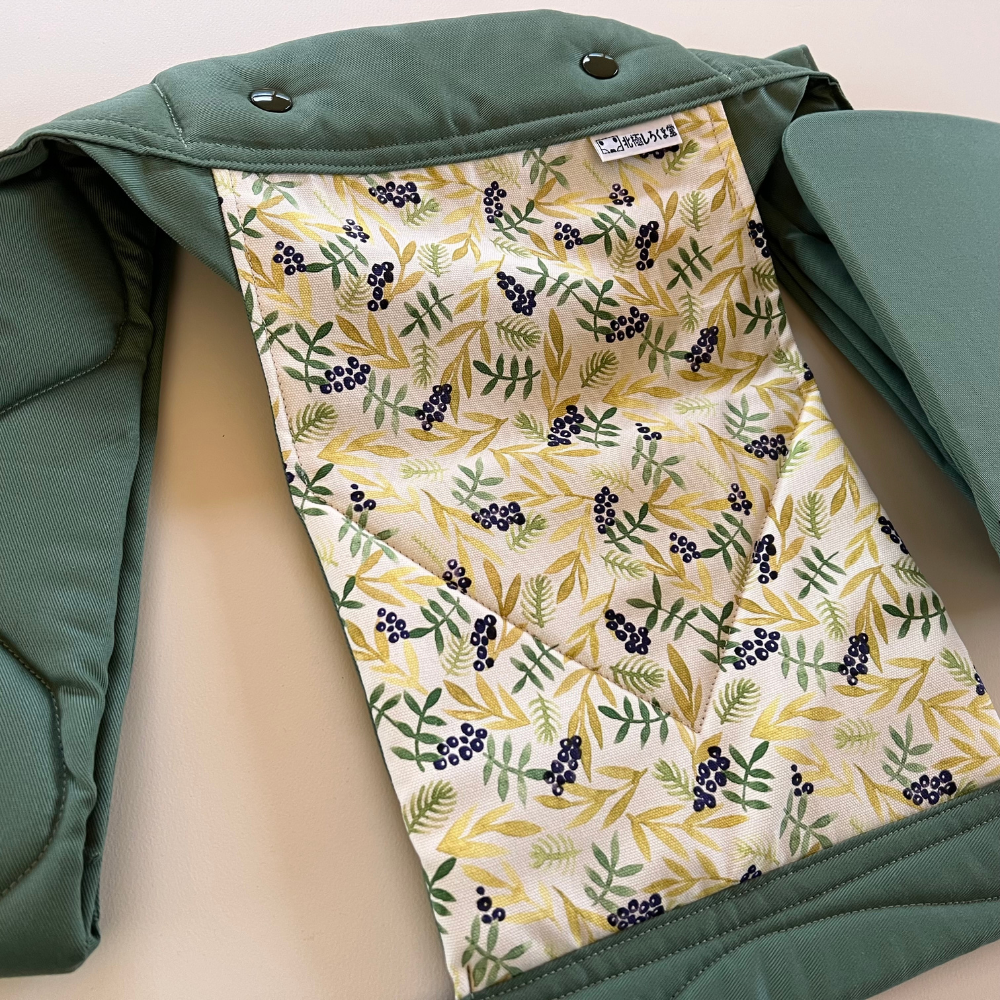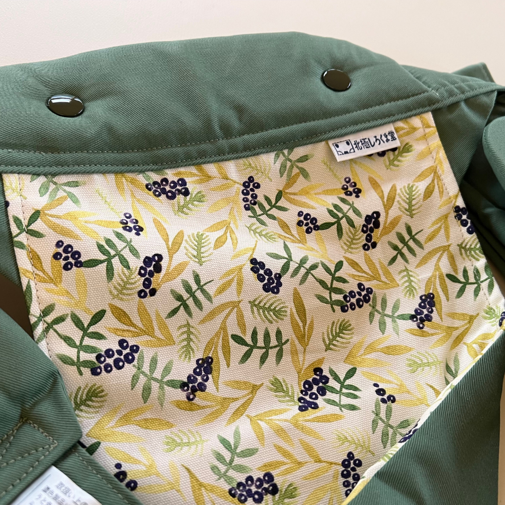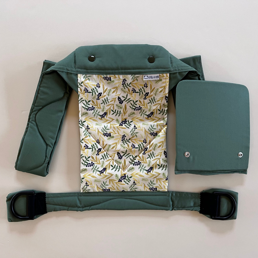 紐は少し深い緑、パネル(背あて)はberryの模様です。これから収穫の季節を迎えるのにぴったりですね。