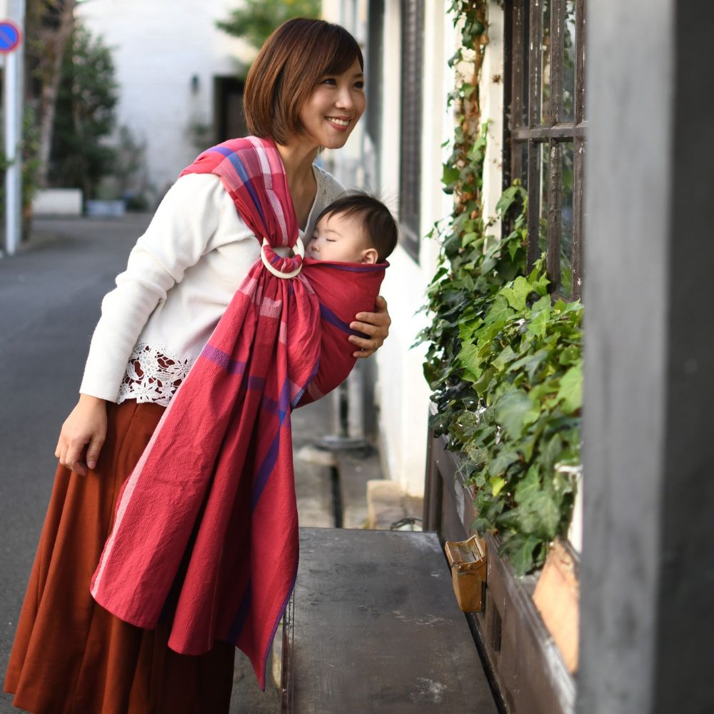 キュット ミー!シリーズは新生児から3歳まで使えるスリング(抱っこひも)。親も子も理想的な姿勢をつくれるので、快適に抱っこできます。